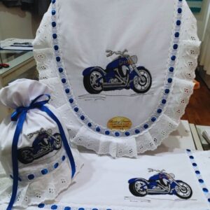 Set de Baño Motos – Toallitas y Bolsa de Pan con Bordado de Motocicletas Personalizado